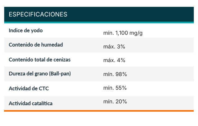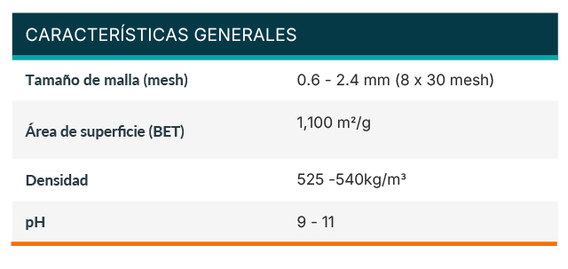 ACTIVESORB®-CX es un carbón activado granular de alta actividad, elaborado con cáscara de coco y activado con vapor. Su capacidad catalítica lo hace ideal para eliminar cloraminas y ácido sulfhídrico (H₂S), además de compuestos orgánicos y subproductos clorados como trihalometanos (THM), garantizando agua potable más limpia y segura.