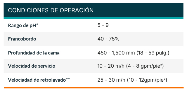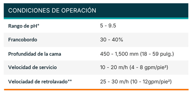 FERROLOX® es un granulado patentado de hidróxido férrico, altamente eficaz para remover fosfatos del agua, logrando concentraciones residuales inferiores a 50 µg/L como PO₄ (<20 µg/L como P⁵⁺). Su capacidad de ser reactivado y reutilizado permite reducir costos, ofreciendo una solución confiable y económica frente a tecnologías como intercambio iónico o membranas.