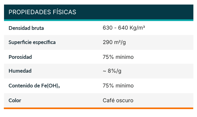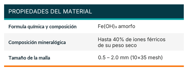 FERROLOX® es un medio adsorbente granular de hidróxido férrico (III) de alta pureza, libre flujo y fácil de manejar. Su proceso patentado produce granos altamente porosos de distintos tamaños, garantizando alta eficiencia de remoción, bajas cargas operativas y un costo reducido. Es ideal para remover H₂S, cobre, cromo, fosfatos y arsénico, ampliando las posibilidades de aplicación del hidróxido férrico.